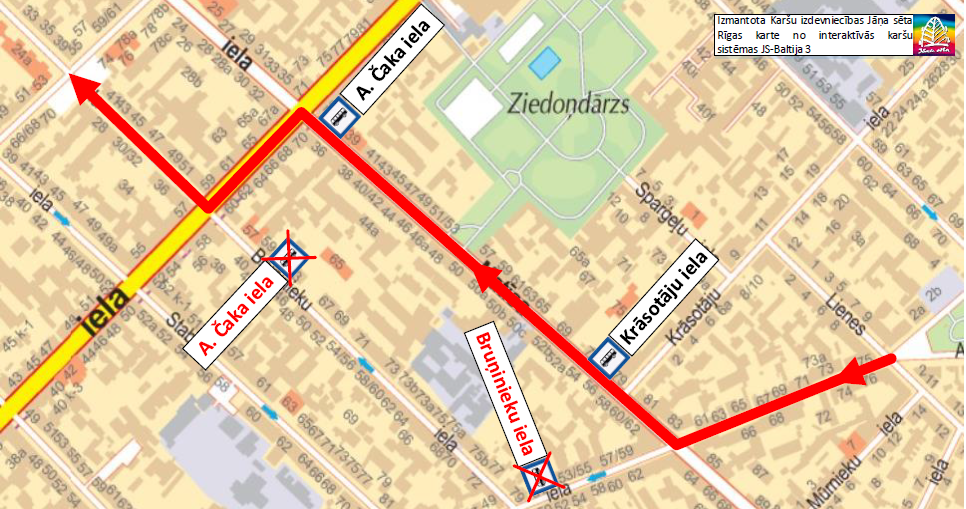 Trešdien, 12. maijā, no plkst. 8.00 līdz plkst. 24.00 plānots veikt asfaltēšanas darbus Bruņinieku ielā, posmā no Aleksandra Čaka ielas līdz Tērbatas ielai. 20. maršruta autobusi brauks pa maršrutu līdz Avotu ielai, tālāk pa Avotu ielu, Matīsa ielu, Brīvības ielu un tālāk pa maršrutu līdz galapunktam „Pētersalas iela”. Pirmais reiss pa apvedceļu no pieturas „Pļavnieku kapi” izbrauks plkst. 7.50.