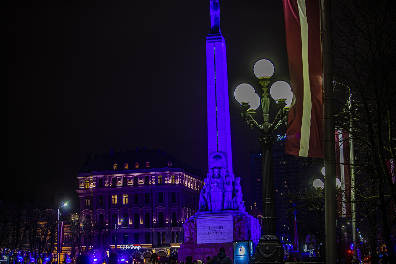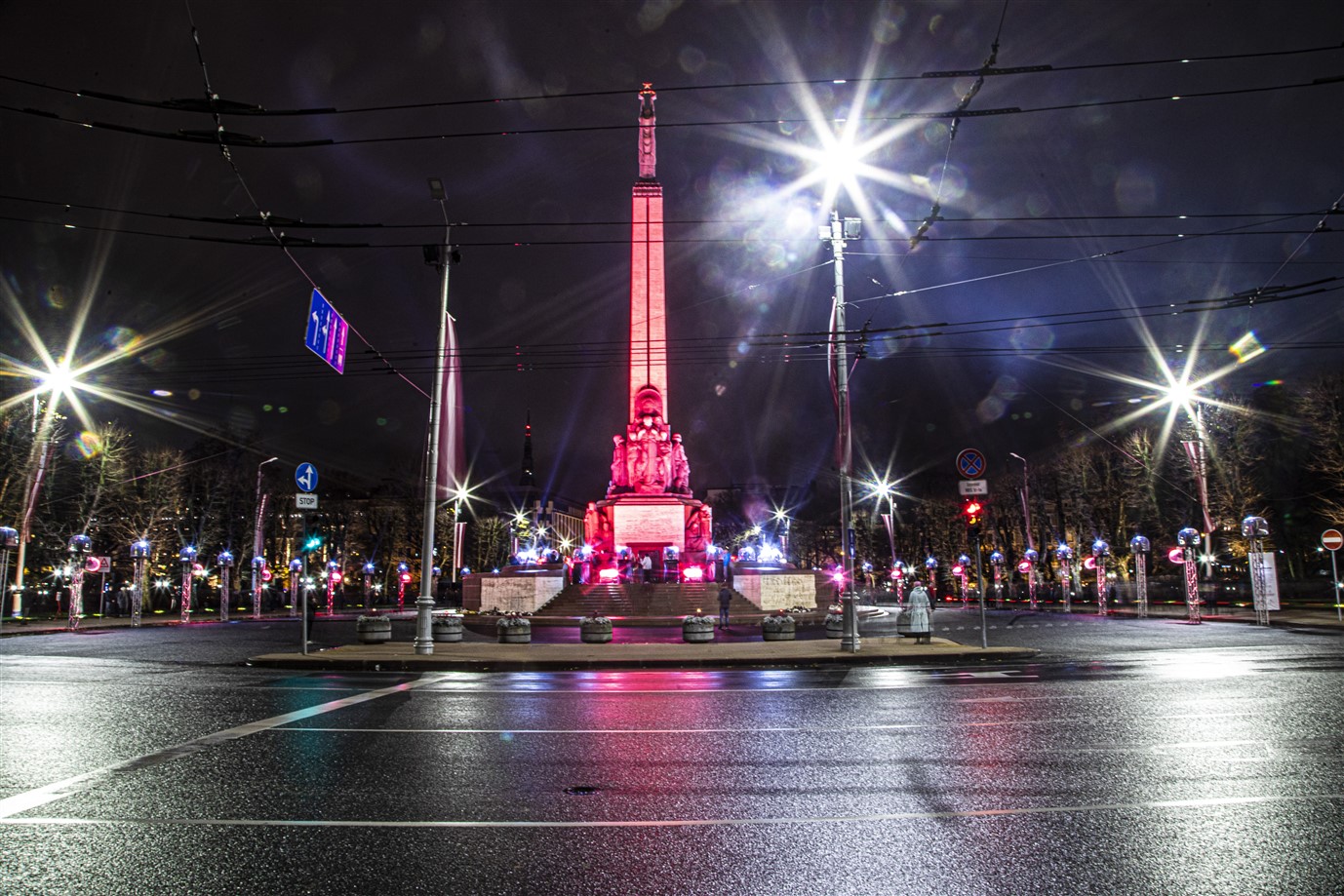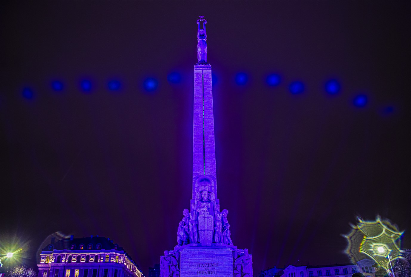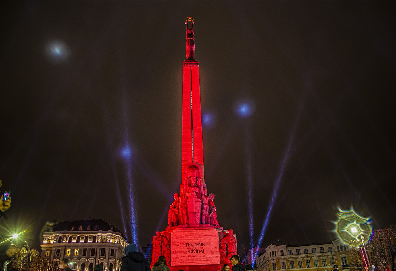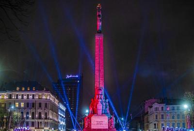 Svētku sajūtu pilsētā radīja Brīvības pieminekļa izgaismojums “Mana dziesma”.