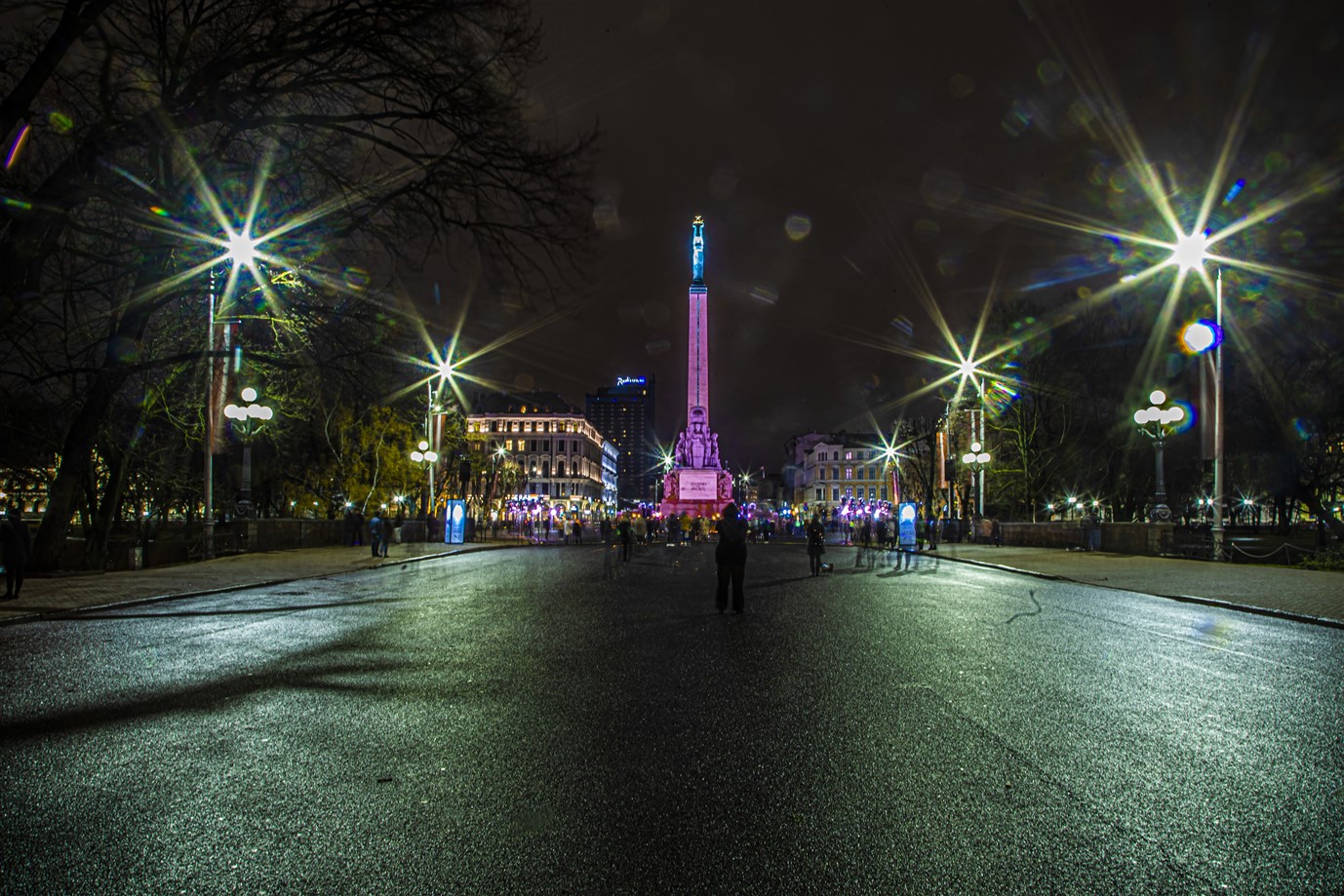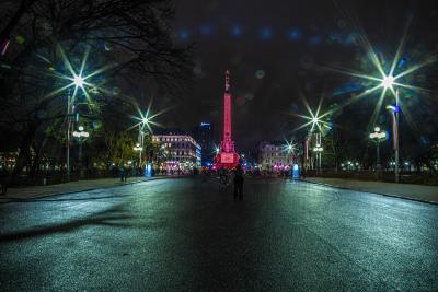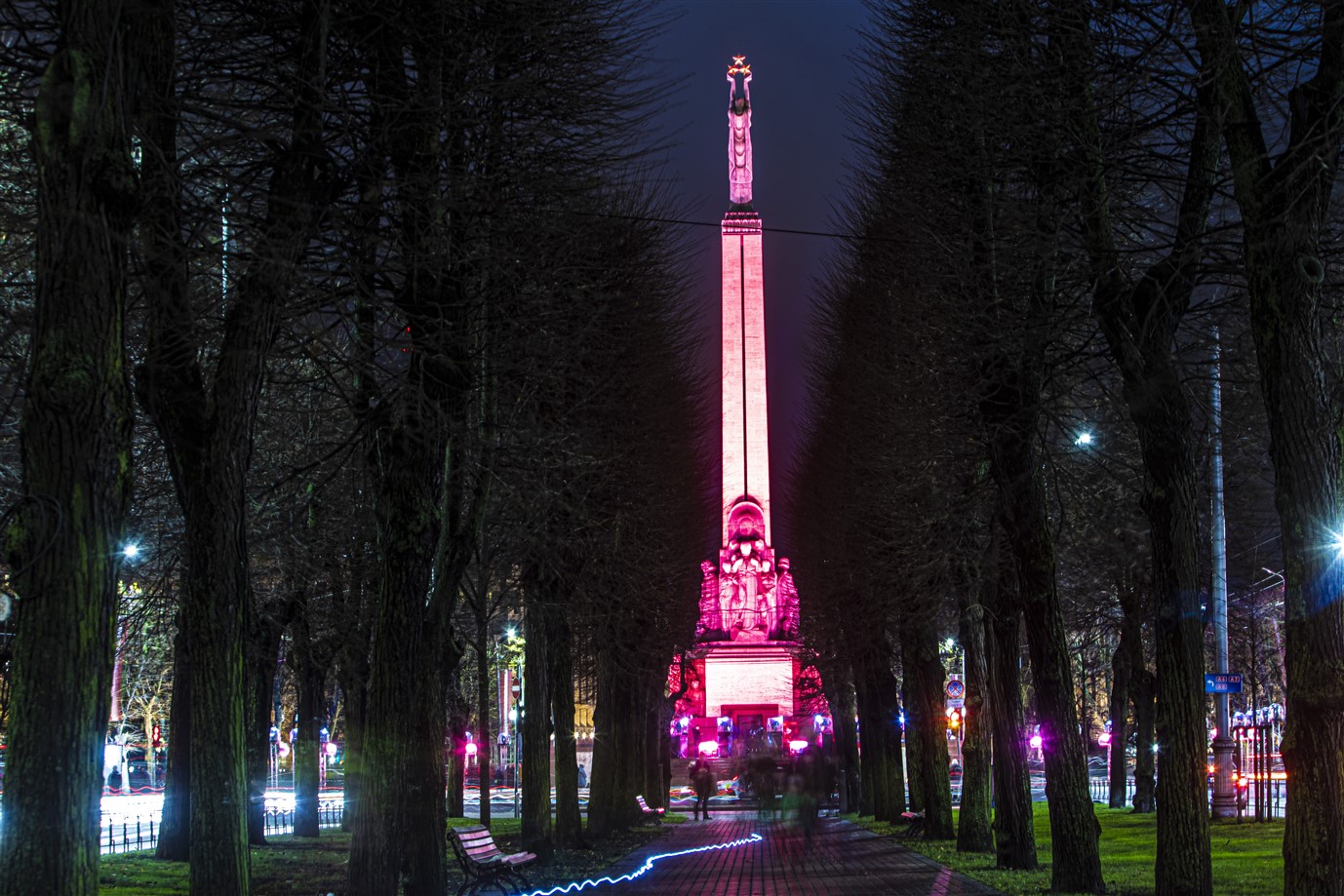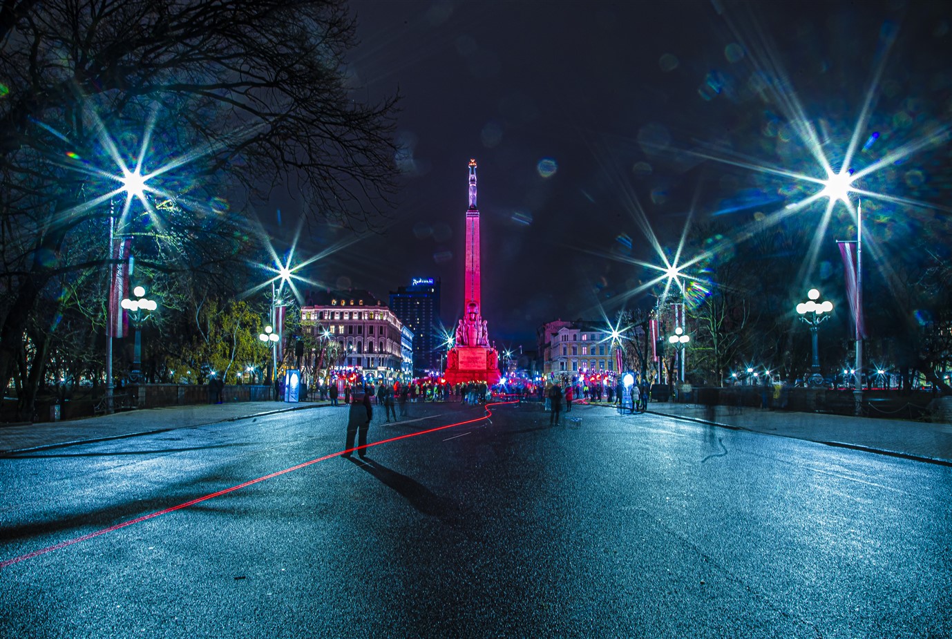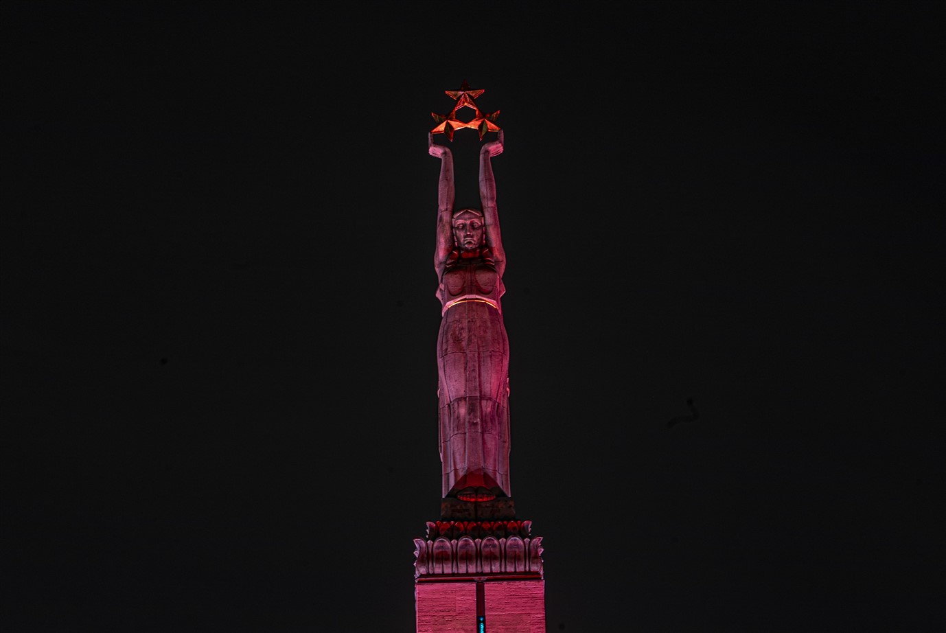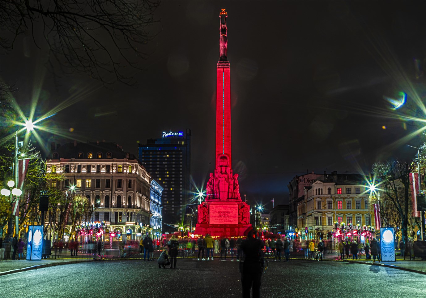 Svētku sajūtu pilsētā radīja Brīvības pieminekļa izgaismojums “Mana dziesma”.