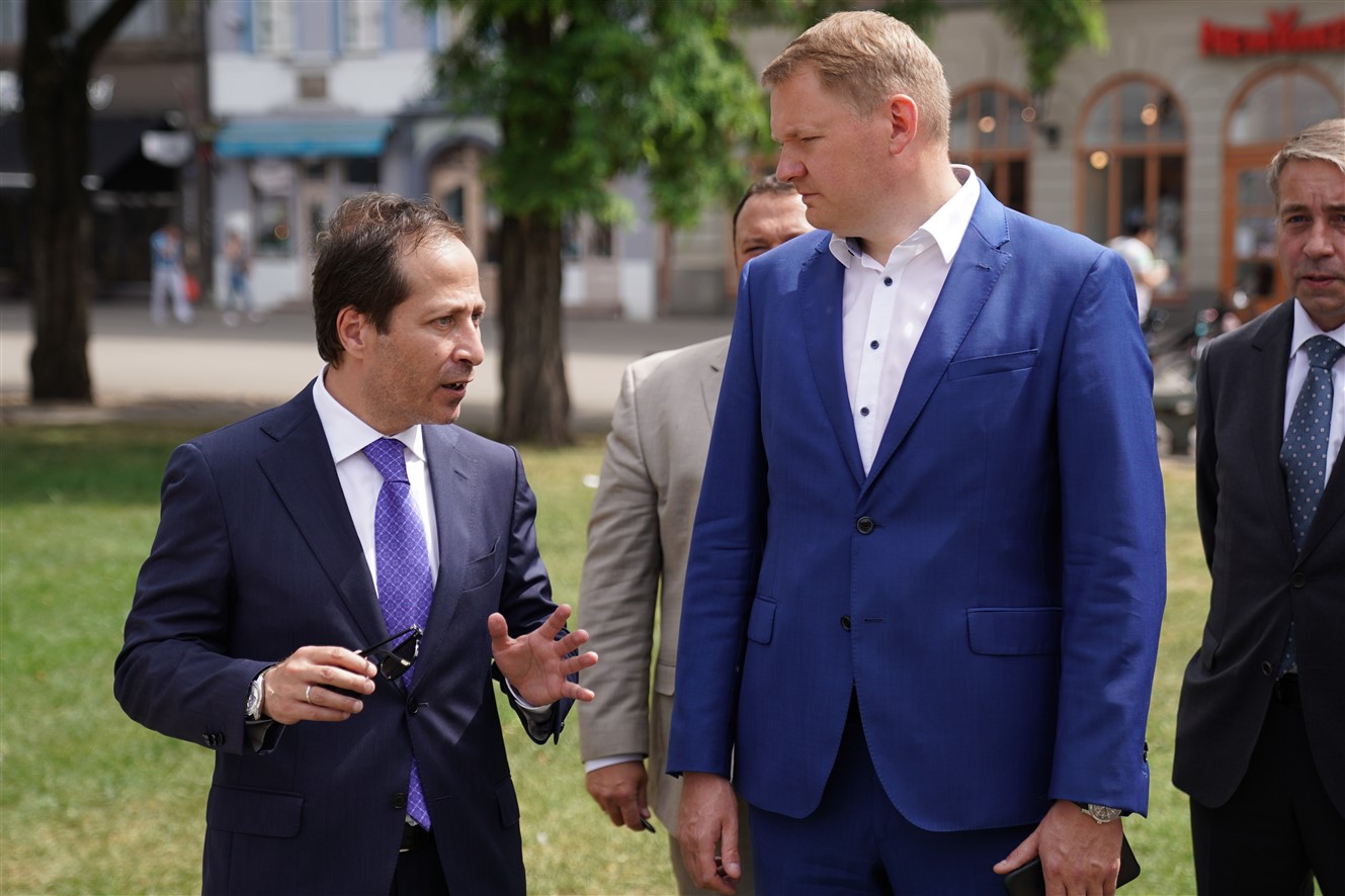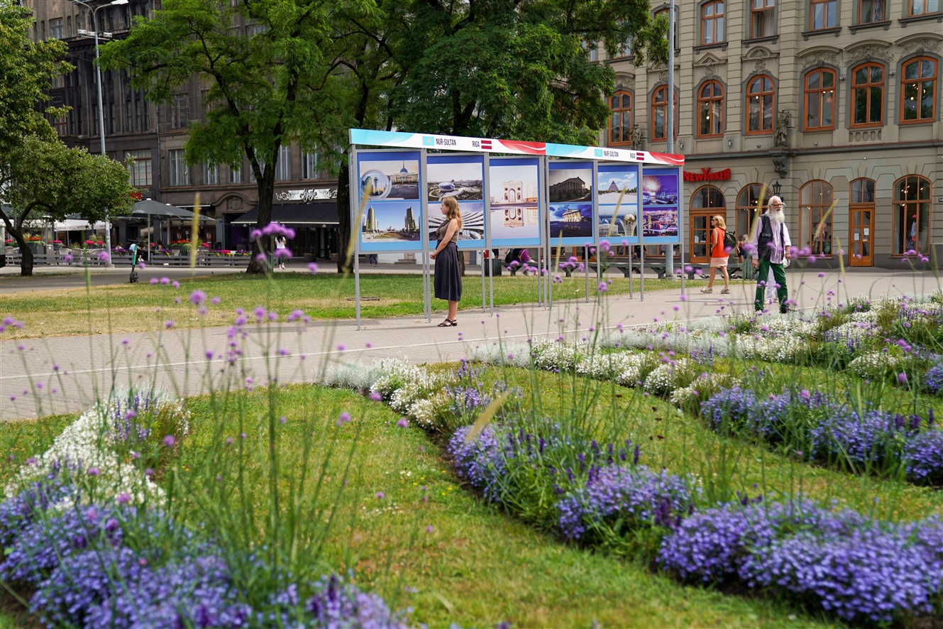 Otrdien, 6. jūlijā, Rīgas domes priekšsēdētāja vietnieks Edvards Smiltēns un pilnvarotais Kazahstānas Republikas vēstnieks Latvijā Timurs Primbetovs Līvu laukumā atklāja fotoizstādi par Kazahstānas galvaspilsētu Nursultanu.