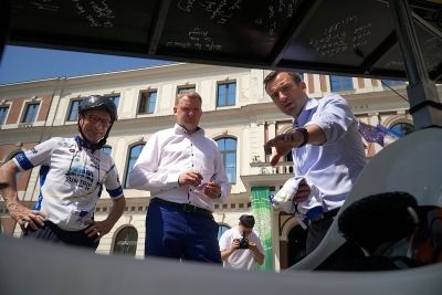 Pie Rīgas Rātsnama tika svinīgi sagaidīts brauciena līderis no Francijas Žans Marks-Dubuluzs (Jean Marc-Dubouloz), kā arī viņa tuvākie sekotāji Emils Barbuts (Emil Barbut) no Lielbritānijas un vēl viens Francijas pārstāvis Bernāns Kukils (Bernand Cauquil). Velobraucējus ar ierašanos Latvijas galvaspilsētā sveica Rīgas mērs Mārtiņš Staķis, Eiropas Komisijas pārstāvniecības Latvijā vadītāja Zane Petre, Rīgas vicemērs Edvards Smiltēns, Mājokļu un vides komitejas priekšsēdētājs Edmunds Cepurītis, Eiropas Komisijas pārstāvniecības vadītājas vietnieks un politikas nodaļas vadītājs Mārtiņš Zemītis un Rīgas Enerģētikas aģentūras vadītājs Jānis Ikaunieks.