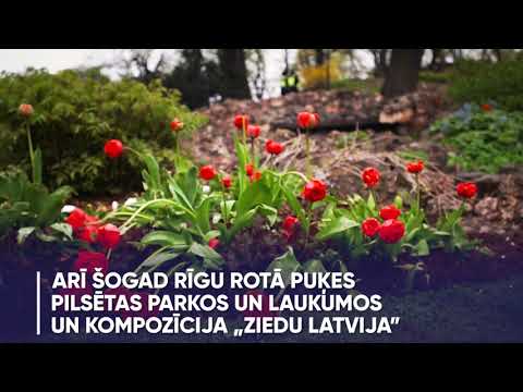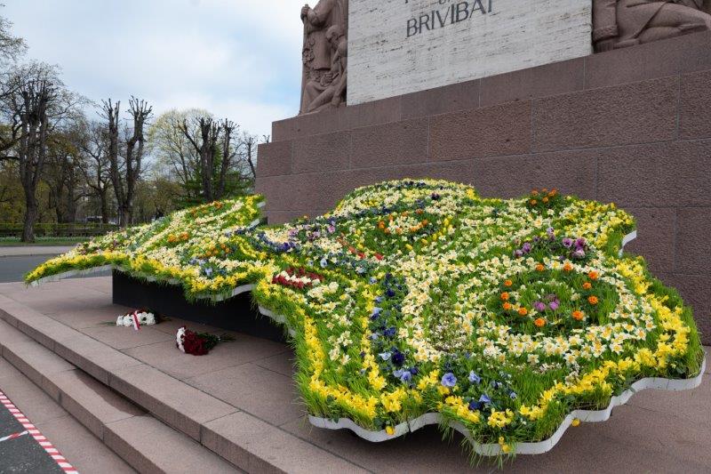 Šogad, kad atzīmējam Latvijas Republikas neatkarības atjaunošanas 30. gadadienu, Rīgu rotā kompozīcija „Ziedu Latvija” un vides mākslas objektā „Goda vārti” ir skatāms stāsts par Latvijas Valsts karogu un himnu.