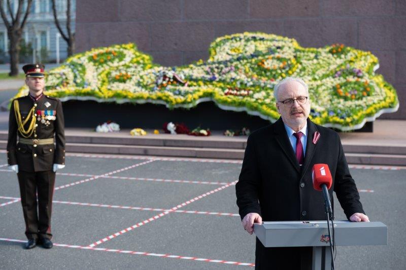Jau daudzus gadus 4. maijā šo ziedu kompozīciju veidoja iedzīvotāji, ievietojot tajā līdzi atnestos ziedus, taču #Paliecmājās laikā ikviens aicināts kompozīciju apskatīt foto galerijā vai video. Svētku laikā vides mākslas objekts „Goda vārti” virtuāli vēsta par Latvijas valsts karogu un valsts himnu „Dievs, svētī Latviju!”