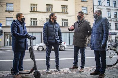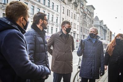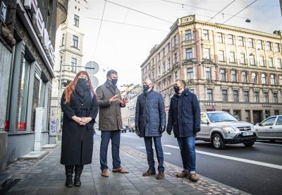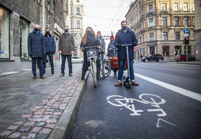 Rīgas domes pārstāvji pārrunā velojoslu eksperimentu A. Čaka ielā