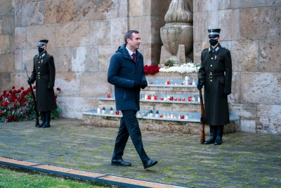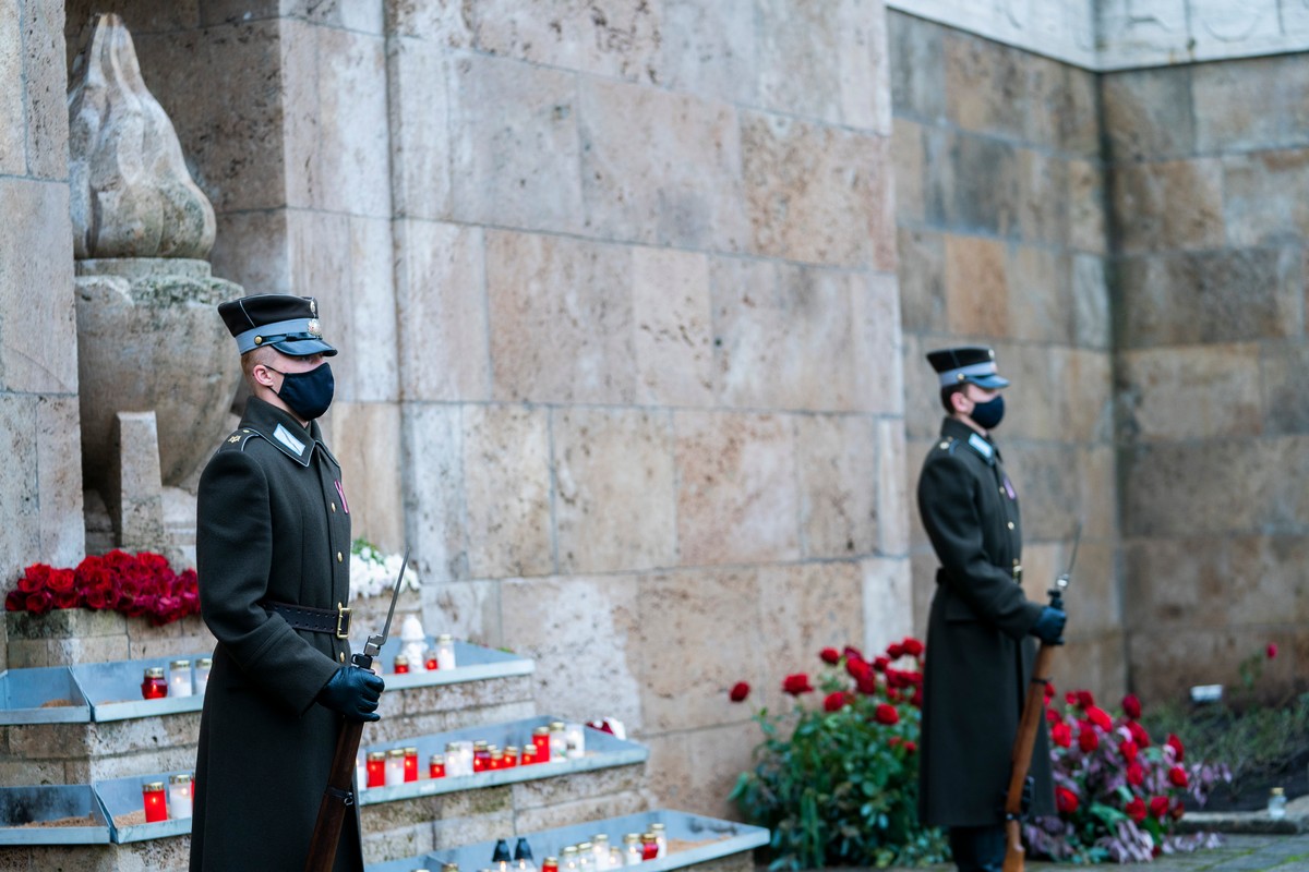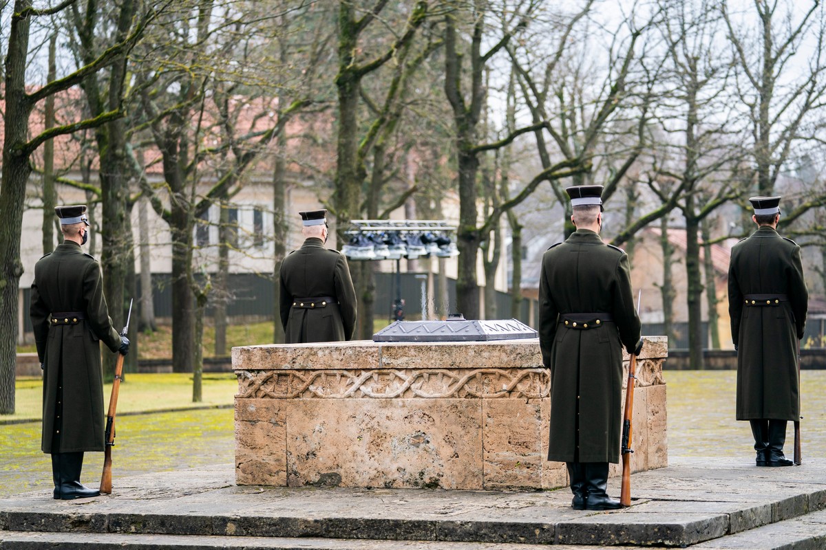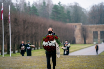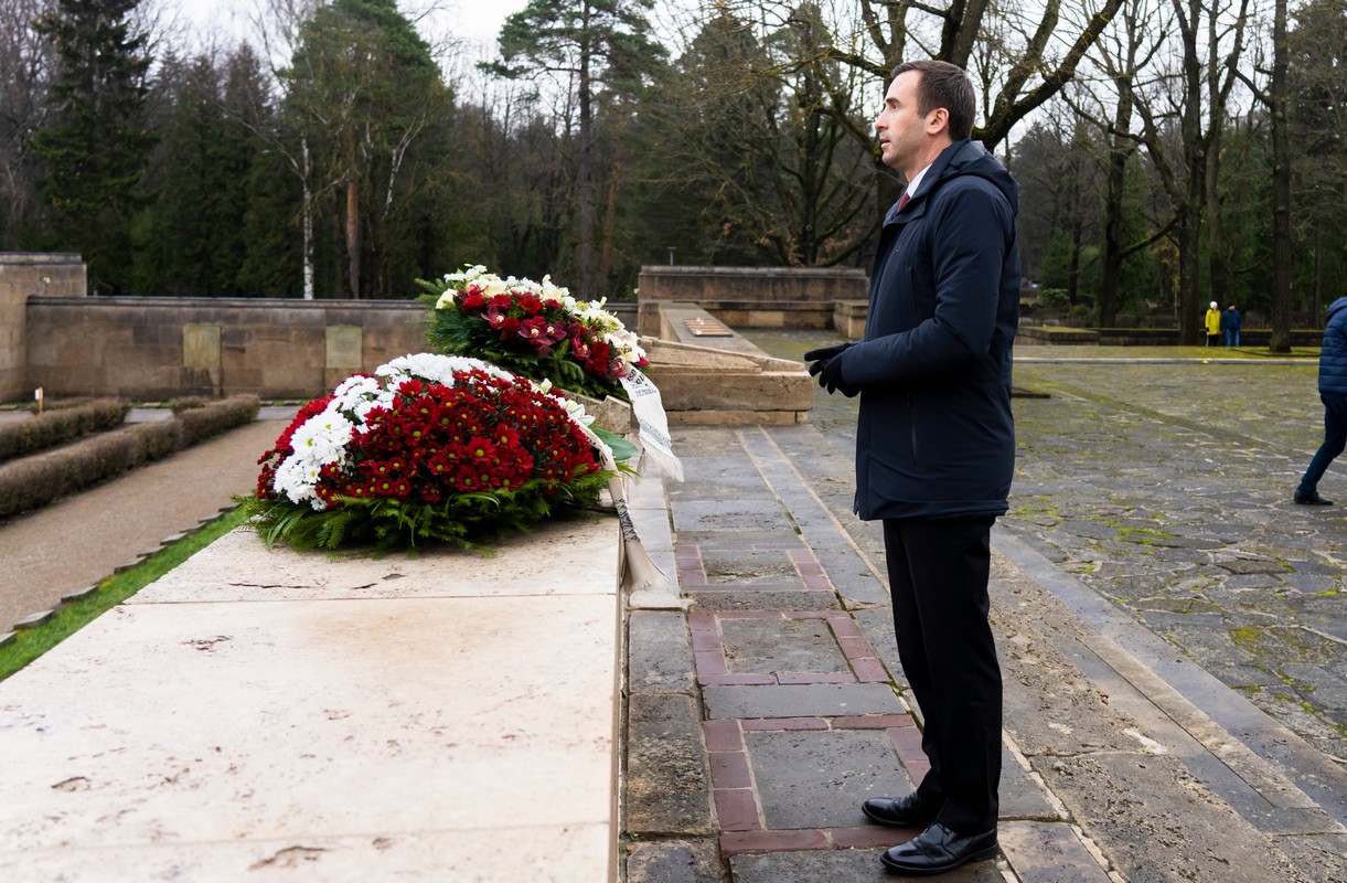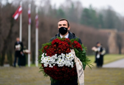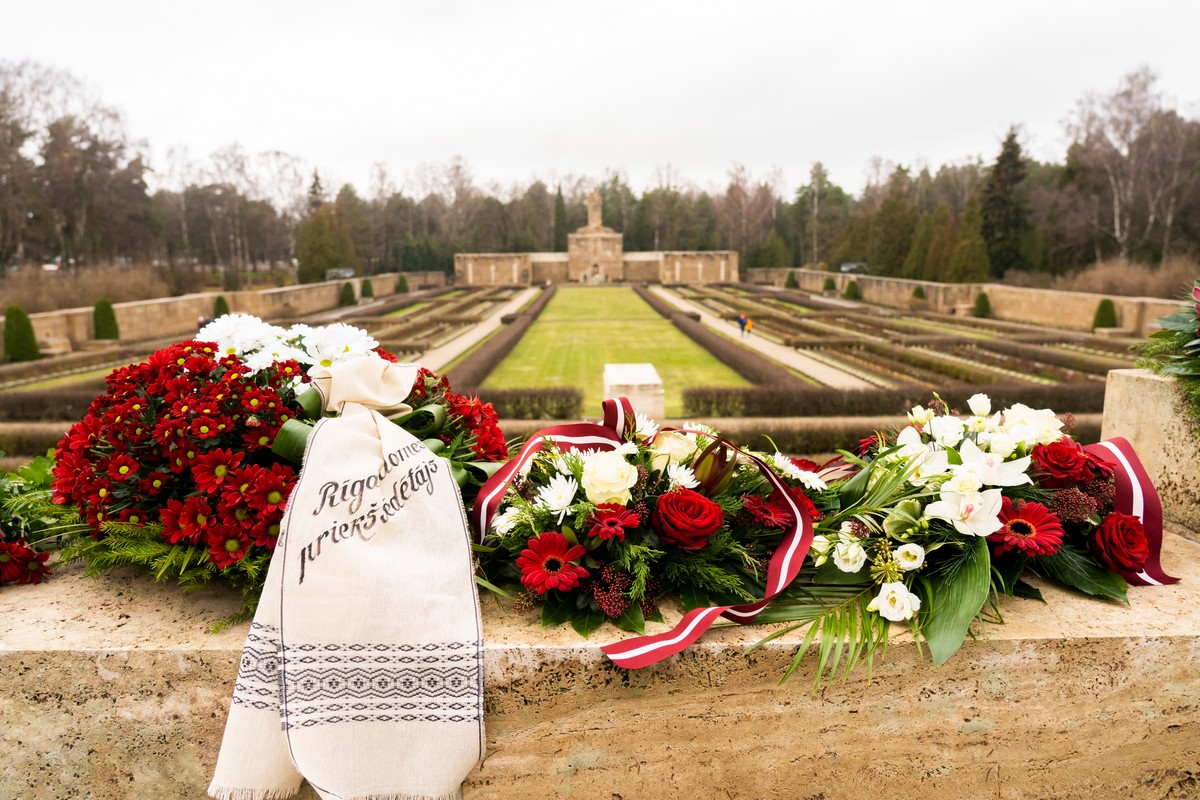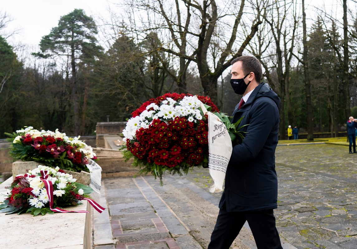 Rīgas domes vadība Lāčplēša dienā noliek ziedus Brāļu kapos