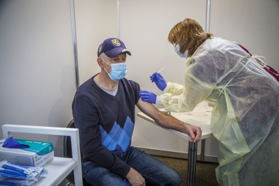 Rīgas pašvaldības izveidotajā masu vakcinācijas punktā Centrāltirgū sestdien sākās iedzīvotāju vakcinēšana