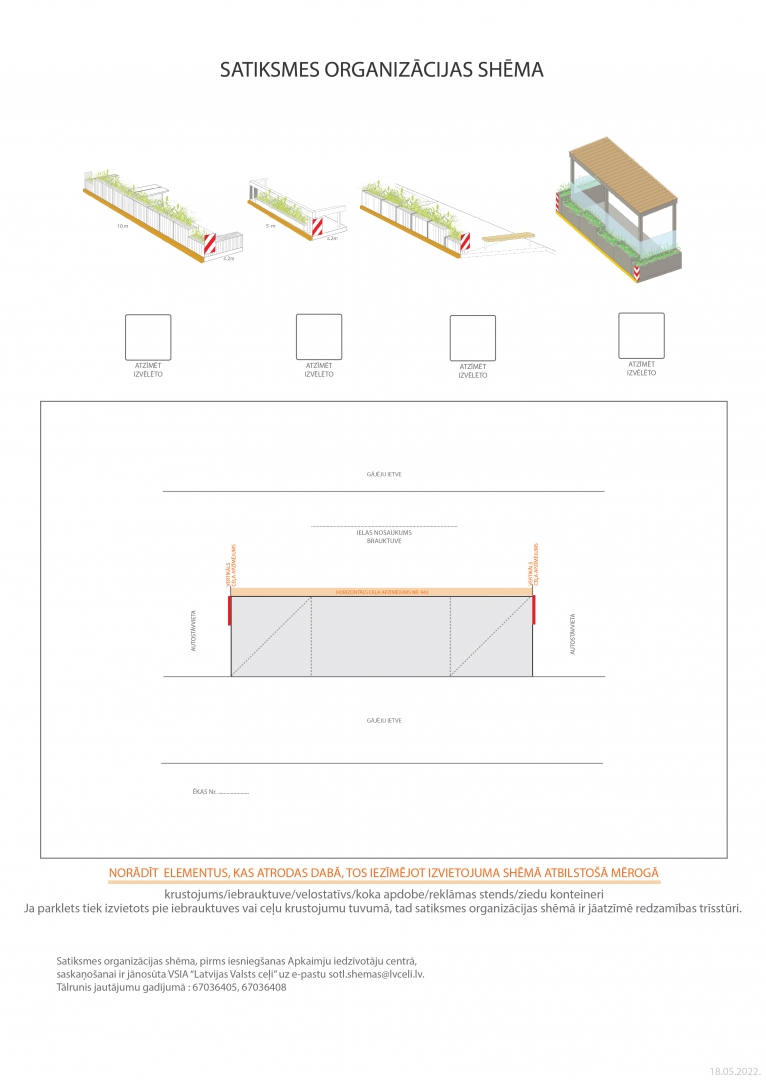 Šajos gadījumos atļaujas saņemšanai nepieciešams iesniegt tikai situācijas plānu vai zemes robežu plānu, kurā atbilstošā mērogā iezīmēta galdu un krēslu aizņemamā teritorija ar izmēriem. Parkleta gadījumā nepieciešams iesniegt aizpildīta satiksmes organizācijas shēma.