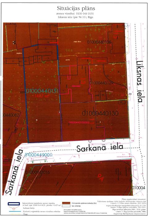 Neapbūvēts zemesgabals bez adreses, Sarkanā ielā, Rīgā (kadastra apzīmējums 0100 044 0131), 1457 m² platībā, izmantošanas veids: Īslaicīgas lietošanas būves – maksas autostāvvietas (turpmāk – Būve) būvniecība, uzturēšana un apsaimniekošana. |