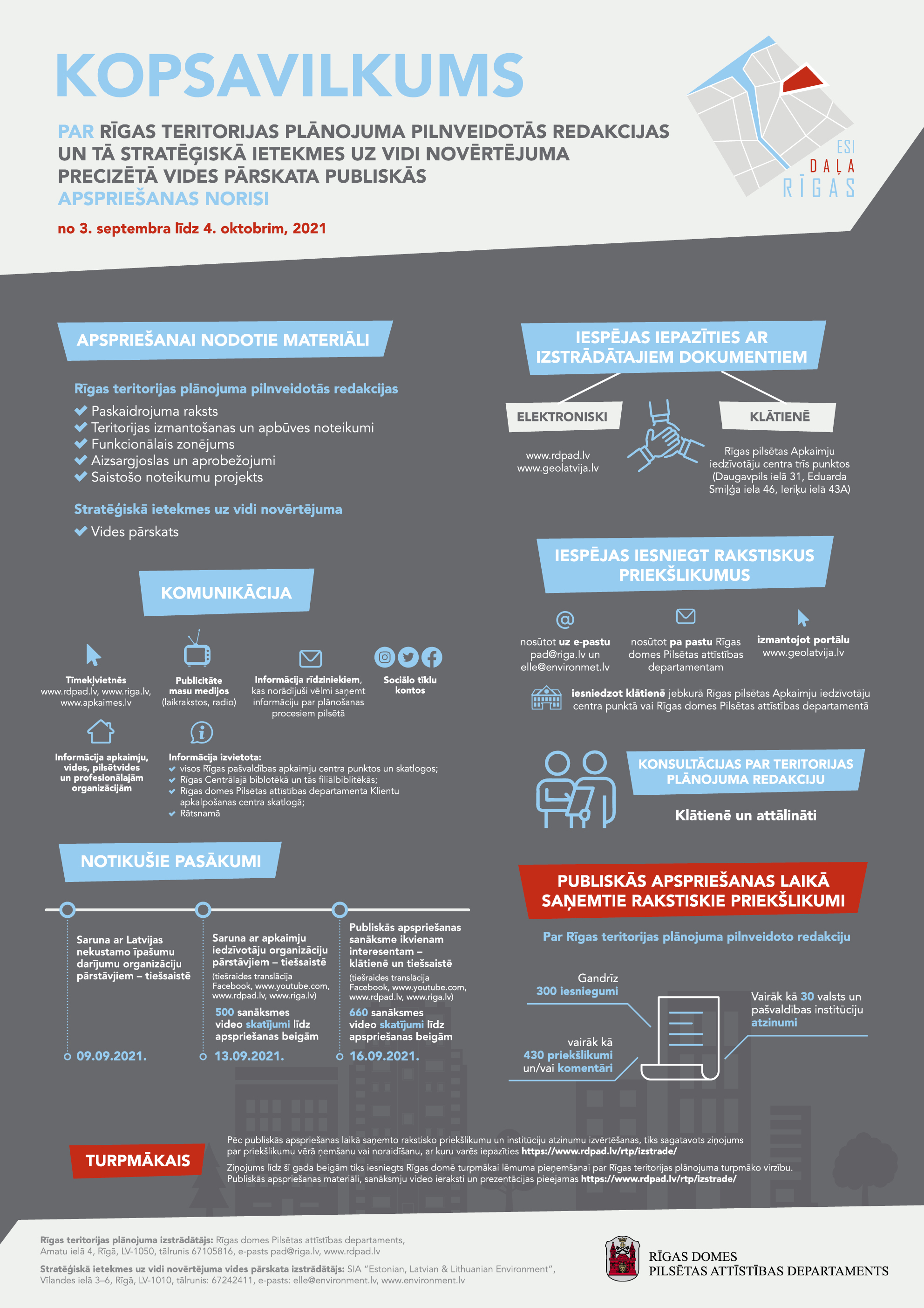 Jau ziņots, ka no 3. septembra līdz 4. oktobrim norisinājās jaunās Rīgas attīstības programmas un pilnveidotās Rīgas teritorijas plānojuma redakcijas publiskā apspriešana. Sanāksmju un tematisko tikšanos video ierakstus iespējams noskatīties šeit.