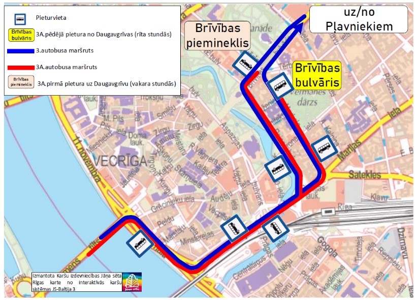No 15. marta uz ārkātējās situācijas laiku plānots izveidot jaunu pagaidu 3A. autobusa maršruts, kas intensīvākajās rīta stundās kursēs maršrutā “Daugavgrīvas iela – Brīvības bulvāris”, bet vakarā maršrutā “Brīvības bulvāris – Daugavgrīva”, tādejādi atslogojot 3. autobusa maršrutu (skatīt attēlā). Pasažieri, kuri iegādājušies mēneša braukšanas biļetes 3. autobusa maršrutam, varēs tās izmantot arī jaunajā maršrutā, braucienu reģistrējot.