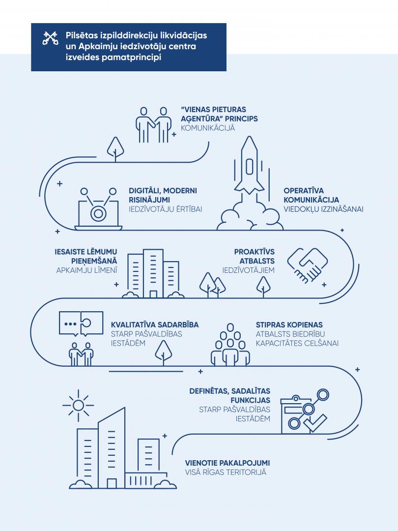 “Mūsu mērķis ir nākt tuvāk apkaimēm, un modernizēt rīdziniekiem piedāvātos pakalpojumus. Izmaiņas paredz jau šogad lielākajās pilsētas apkaimēs izveidot piecas vienas pieturas aģentūras saziņā ar pilsētniekiem, veicināt biedrību iesaisti lēmumu pieņemšanā apkaimju līmenī un novērst pašvaldības struktūru funkciju dublēšanos. Pārmaiņu rezultātā pašvaldība piedāvās iedzīvotāju vajadzībās balstītus pakalpojumus un atgriezenisko saiti dialogā ar mūsu pilsētas iedzīvotājiem!” – tā uzsver Rīgas domes priekšsēdētājs Mārtiņš Staķis.