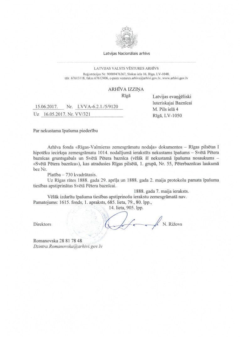 Būtiski fakti no Svētā Pētera baznīcas īpašuma tiesību vēstures