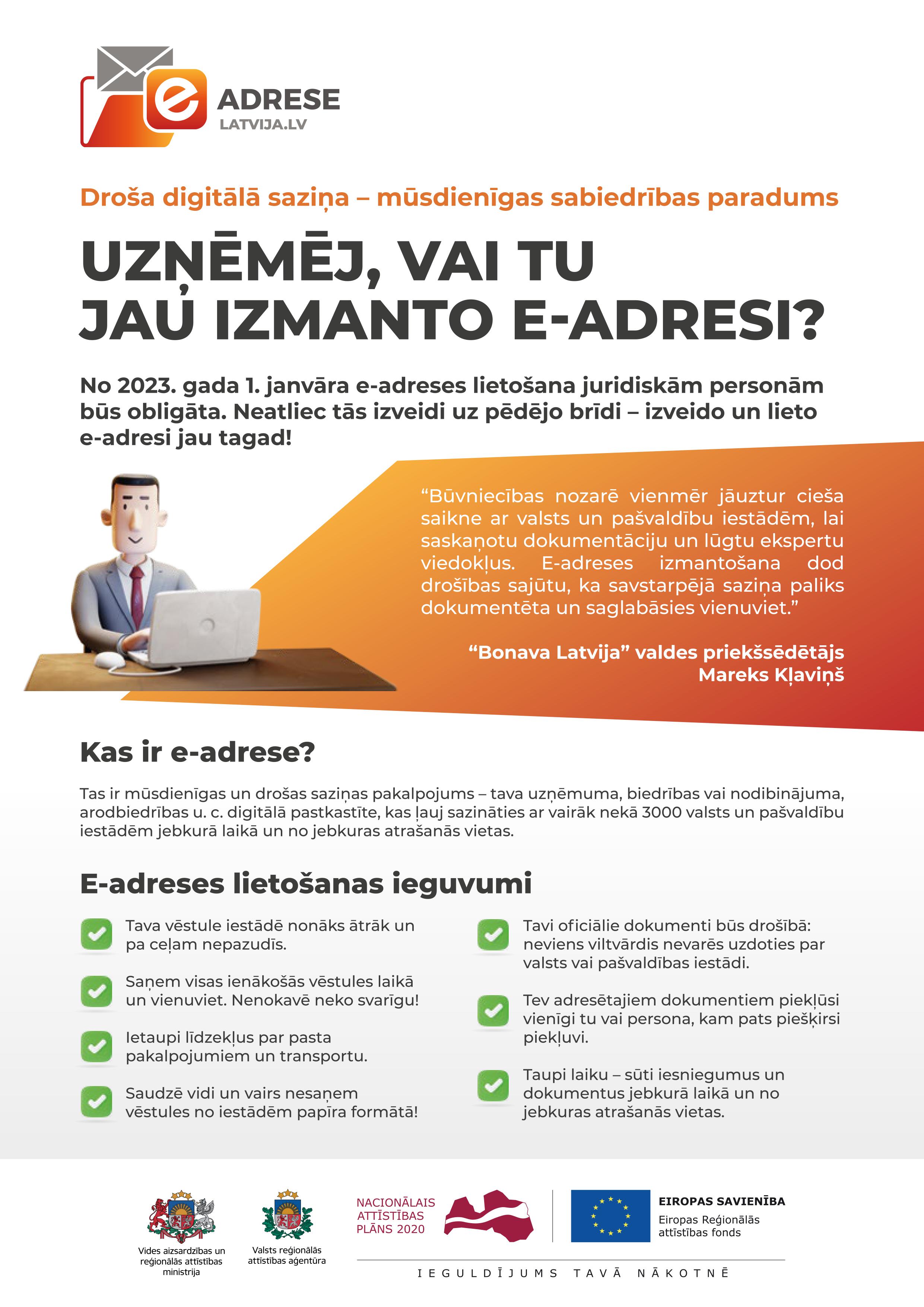 E-adrese jeb oficiālā elektroniskā adrese ir personalizēta pastkastīte portālā