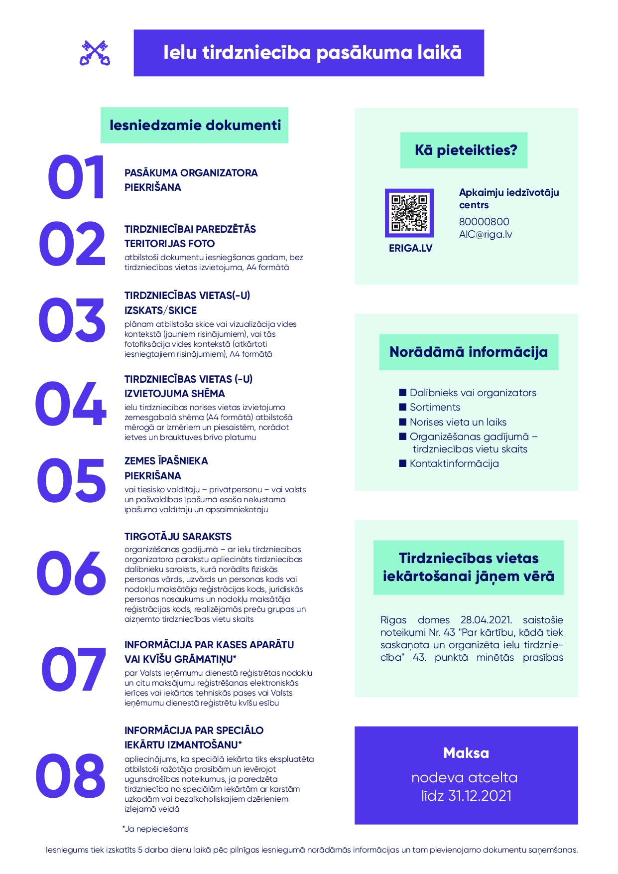 - Atļaujas saņemšanai nepieciešams iesniegt situācijas plānu vai zemes robežu plānu, kurā atbilstošā mērogā (A4 formātā) iezīmēta galdu un krēslu aizņemamā teritorija ar izmēriem.