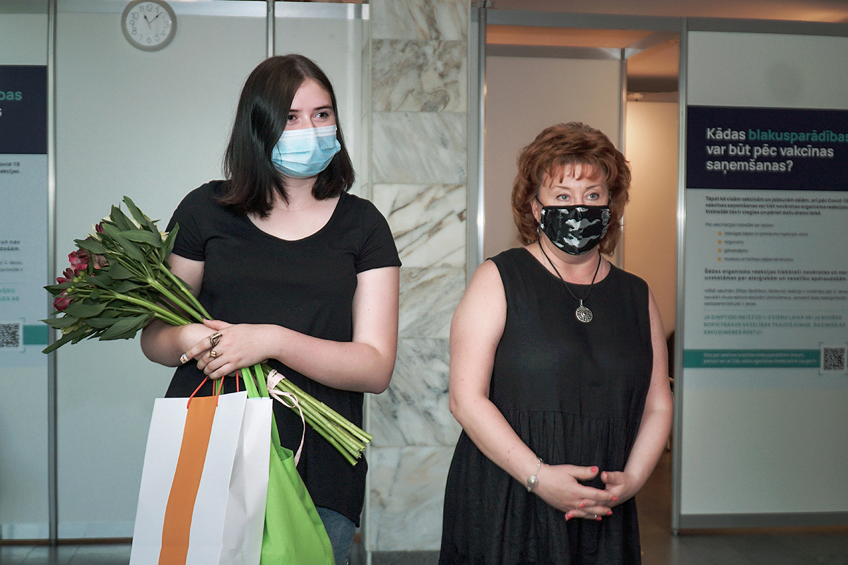 Анита Каменщикова, директор поликлиники Объединения центров здоровья Dzelzceļš, подарила подарочную карту на все услуги центра, она также выразила удовлетворение тем, что Агнесе идет по пути очного обучения, чего ждут многие молодые люди.