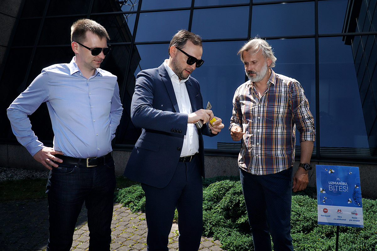 Для того, чтобы способствовать развитию зеленого мышления и экологическим проектам в городе, в среду, 17 июня, на открытой террасе 3-го этажа Рижской ратуши разместили три пчелиных улья. Проект реализован в сотрудничестве с городским пчеловодом Угисом Малниексом. Новые обитатели Ратуши -- три созданные в этом году пчелиные семьи, которые только сейчас начнут набирать силу и достигнут зрелости во второй половине лета