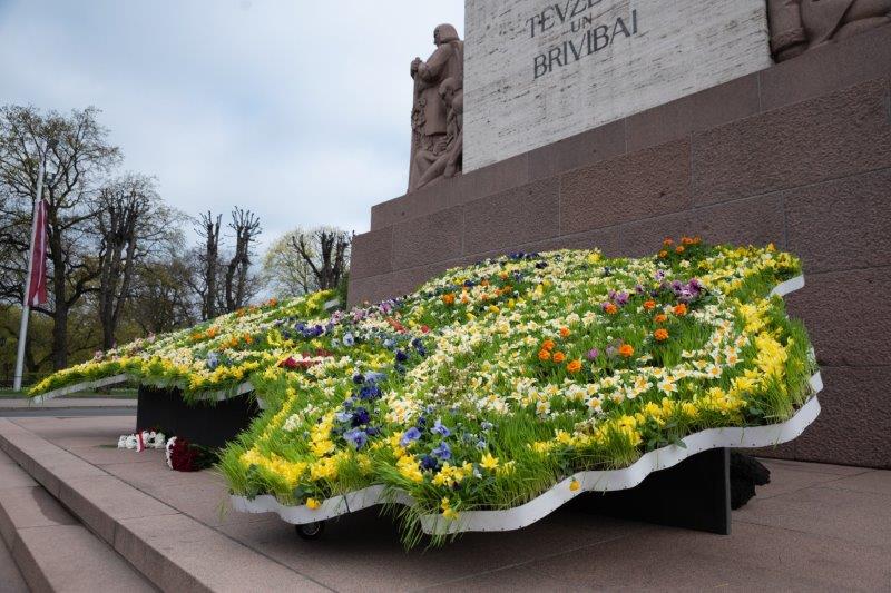 В этом году, когда отмечаем 30 летие восстановления независимости Латвийской Республики, в Риге украшает композиция “Цветочная Латвия” и на объекте художественного искусства “Почетные ворота” можно увидеть рассказ о государственном флаге и гимне Латвийского государства.
