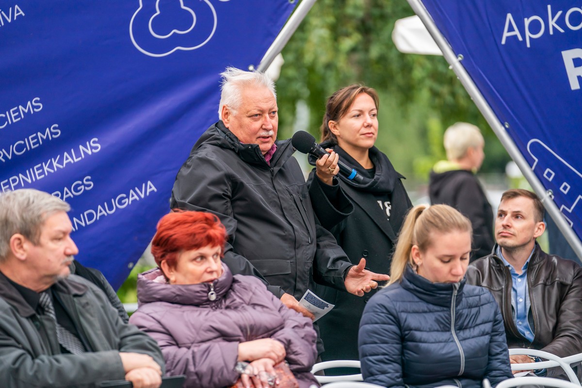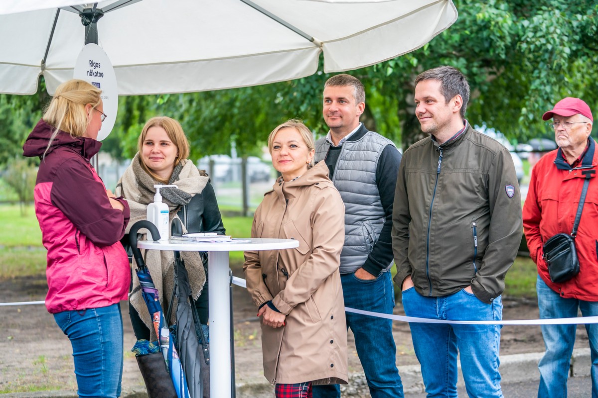 Председатель Рижской думы Мартиньш Стакис, депутаты и сотрудники самоуправления в рамках цикла бесед «Встречи с мэром Риги в районах» в среду, 26 августа встретились с жителями в Пурвциемсе.