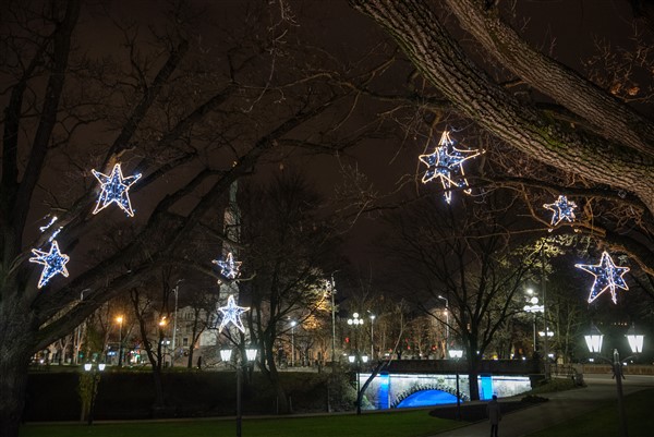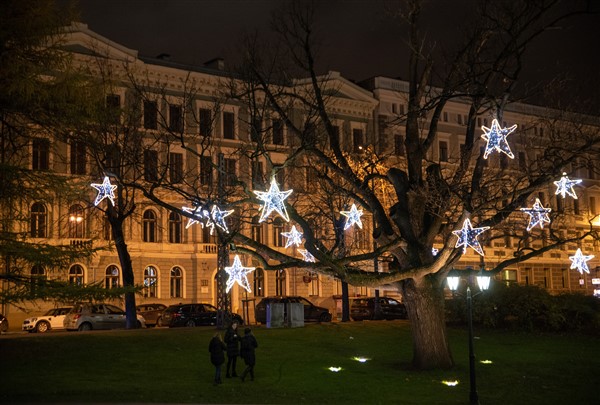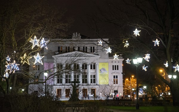 В Риге зажгли огни на рождественских елках и включили праздничное освещение