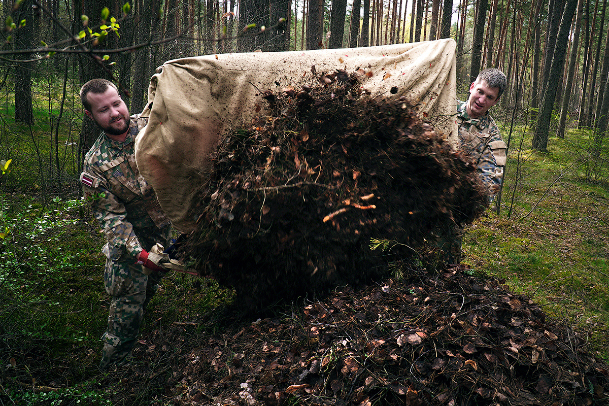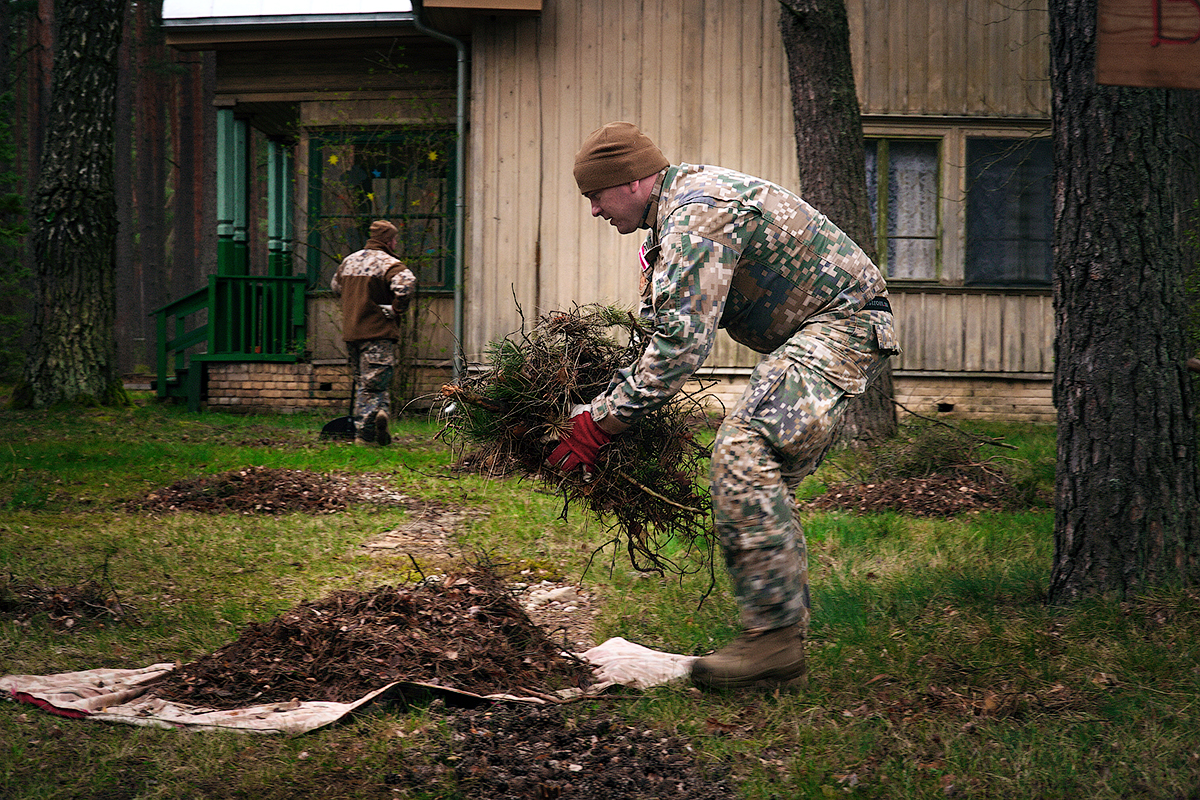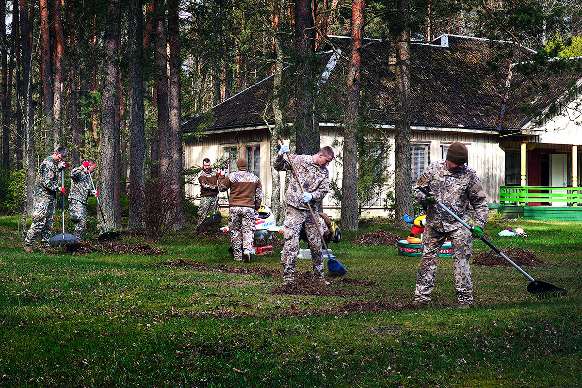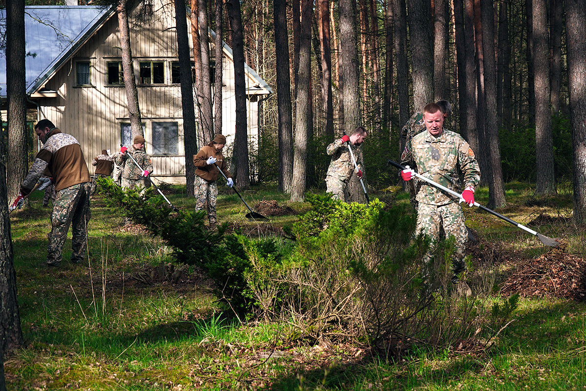 В среду, 29 апреля, солдаты Управления материально-технического обеспечения Национальных вооруженных сил привели в порядок территорию летнего лагеря Детско-юношеского центра Рижского самоуправления в Балтэзерсе.