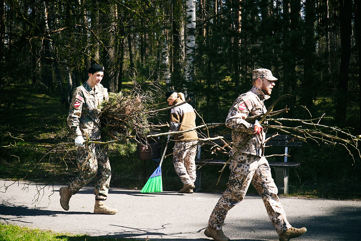 В Четверг, 30 апреля, земессарги Студенческого батальона и 13-го пехотного батальона Земессардзе принимают участие в уборке территорий центров социального ухода «Гайльэзерс» и Stella maris, а 6 мая солдаты Штабного батальона НВС наведут порядок на территории центра «Межциемс».