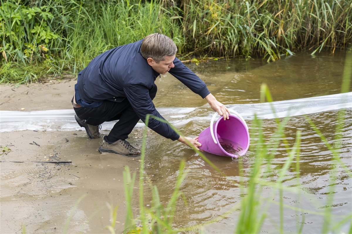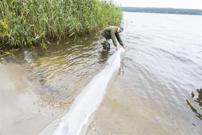 26 августа в очередной раз пополнили рыбные ресурсы озера Юглас, выпустив 34 тысячи мальков судака.